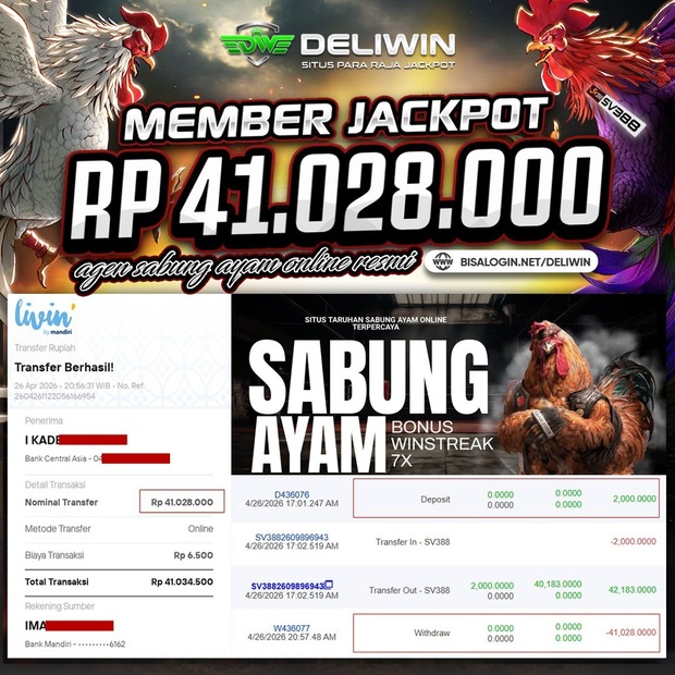 • Selamat Datang Disitus DELIWIN Agen Bandar Taruhan Bola PIALA DUNIA 2026, Sabung ayam Club388, WS168 dan GA28 resmi Aman & Terpercaya Menerima Deposit via QRIS, Pulsa, OVO, DANA, Sakuku, Linkaja, Shopeepay, Linkaja & Gopay Tanpa Potongan Online 24 Jam.